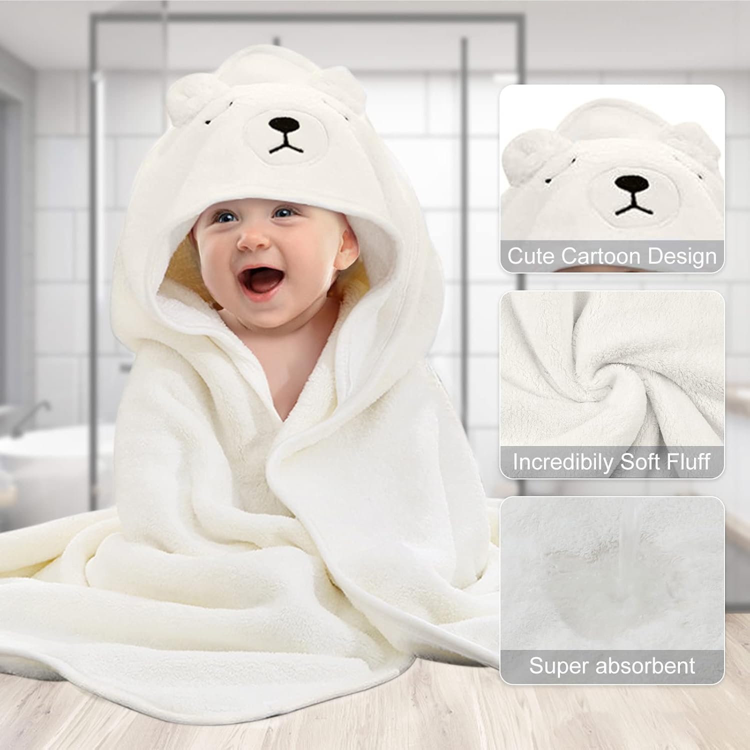- SOFT and ABSORBENT: Our thick, plush hooded baby towel is as flexible as fluffy white clouds. You can wrap and dry your baby in this gentle, warm, and comfortable bath towel after bath or swimming
