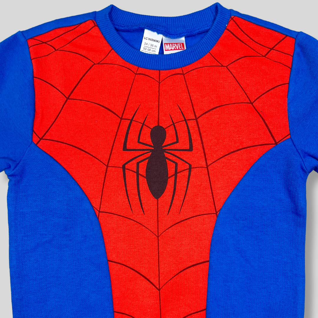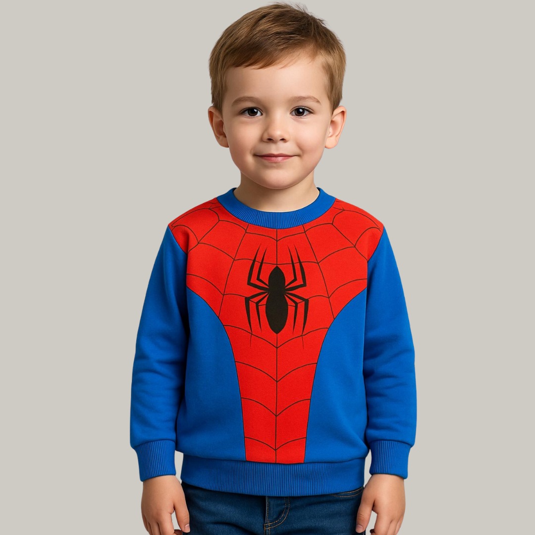 Turn your little one into their favorite web-slinging hero with this Spider-Man costume sweatshirt! Designed to mimic Spider-Man’s iconic suit, this sweatshirt features a bold red web pattern with the classic black spider emblem on the chest. The soft and cozy fabric ensures comfort, making it perfect for casual wear, playtime, or even as a lightweight costume.