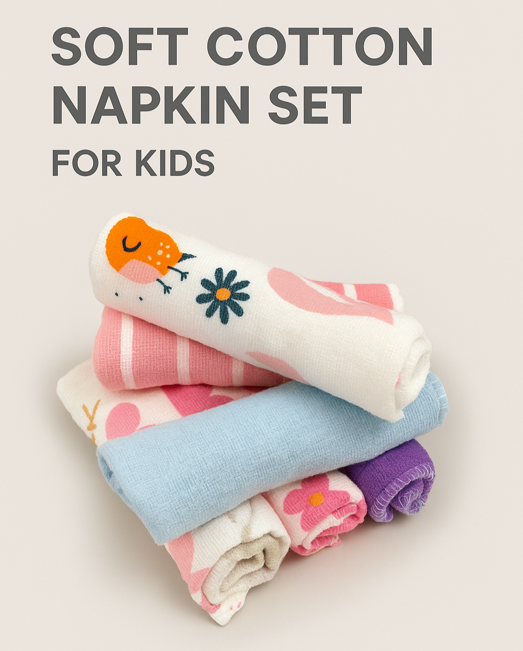 Soft Cotton Napkin Set For Kids ,Multicolor, Pack of 6