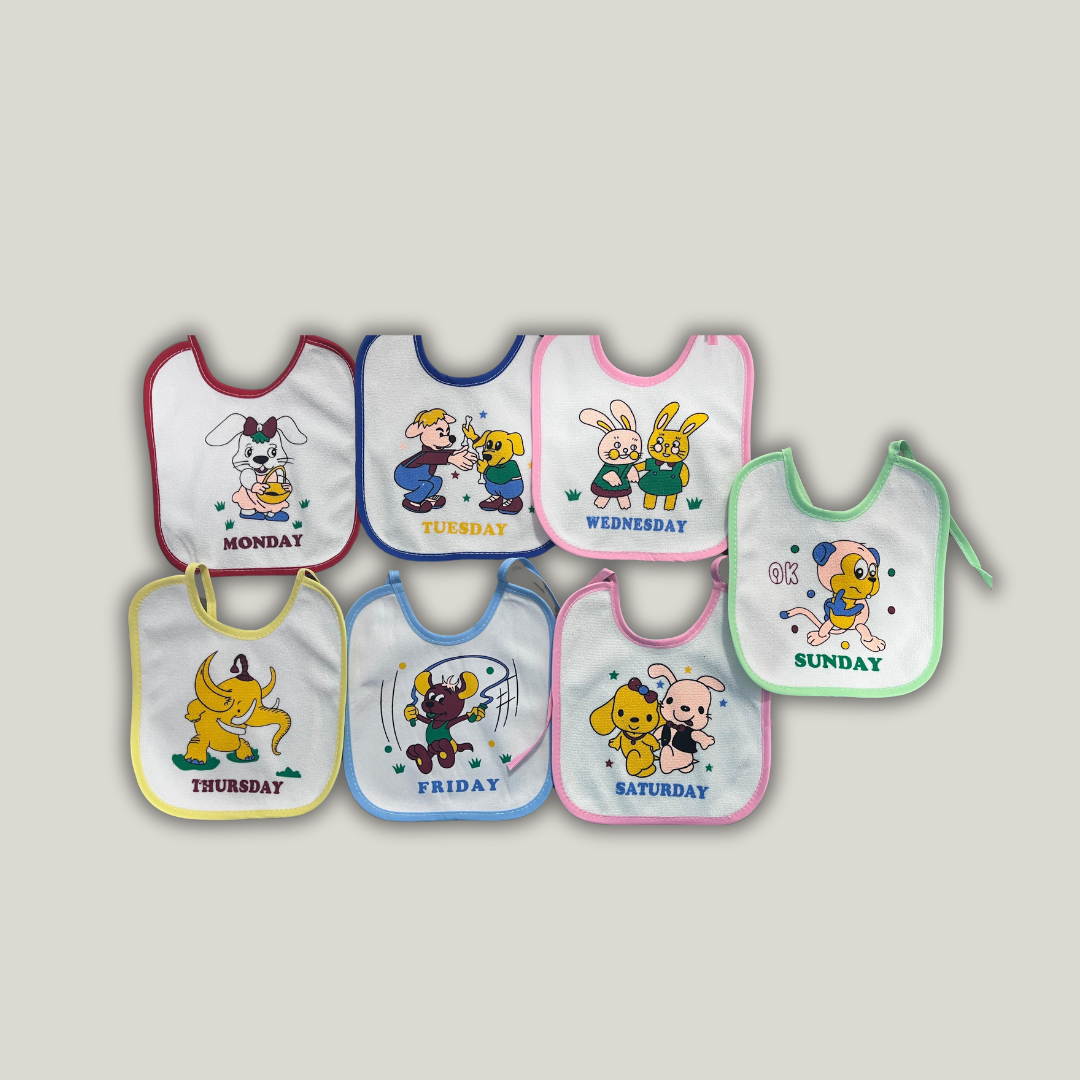 Waterproof Multi Color 7 Days Baby Bibs (Pack Of 7)